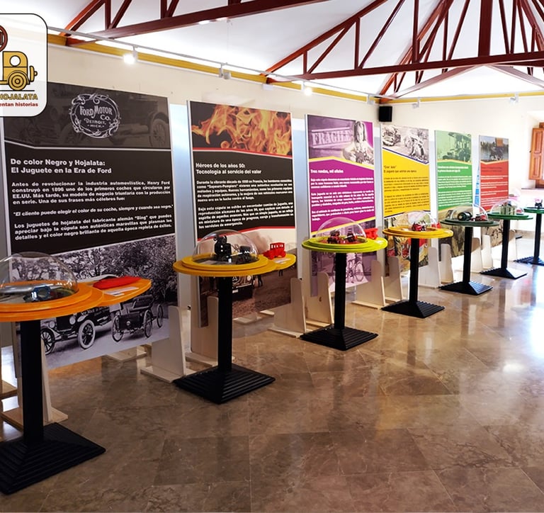 Nuestra exposición itinerante Magia de hojalata, juguetes que cuentan historias ha sido ampliada contando con un total de 30 paneles expositivos, 37 juguetes originales de hojalata y diversas piezas originales relacionadas con las historias que cuenta cada juguete.